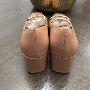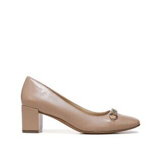 Style now, comfort always. Slip into this polished chainlink dress pump with a chic snip toe and walkable block heel. Get there beautifully. Classic, all-day dress pump with slip-on fit. Leather upper with a closed snip toe. Metallic chainlink ornamentation. Contour+ Comfort technology for a premium fit and all-day comfort experience. Non-slip outsole. 2.25" block heel. Consciously packaged: 100% of our shoe boxes are made of 80% recycled paper + soy-based ink. Designed using sustainable materials. WHY YOU'LL LOVE IT: Ingenious elegant utility. All-day heels that scale the height of chic with endless versatility and comfort that is downright clever.
