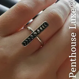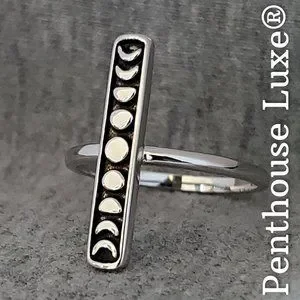 SOLID 925 Sterling Silver Silver Moon Phase Vertical Stacked Ring