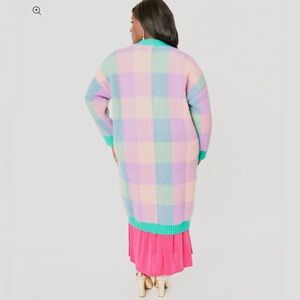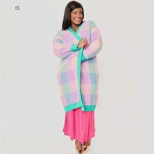 BaeVely by wellmade Inc., size S, pastel plaid long knit cardigan. New with tags. Fits incredibly oversized, would fit up to size L in my opinion.