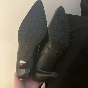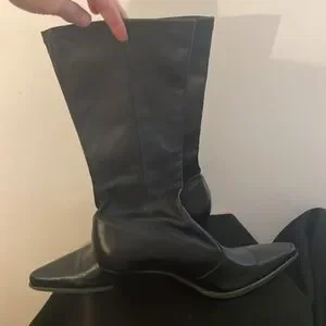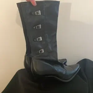 Black leather , pointed toe