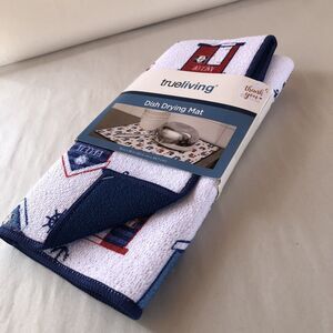 NAUTICAL Dish Drying Mat Reversible 16" X 18" NAUTICAL ICONS 100% Polyester