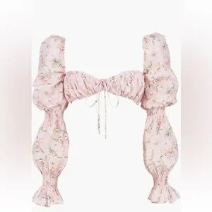 A drawstring cinches this sweetheart-neck crop top framed by flirty long sleeves with shirring and gathering.