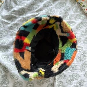 Cute fuzzy letter bucket hat, worn once. Like new