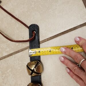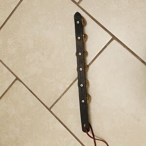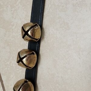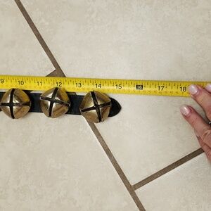 6 weathered real brass bells fastened to 15 inch all leather strap