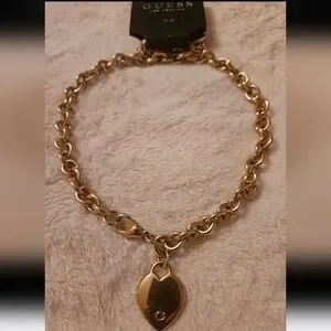Guess Classic 80's beautiful thick choker chain necklace with a super cute heart charm.