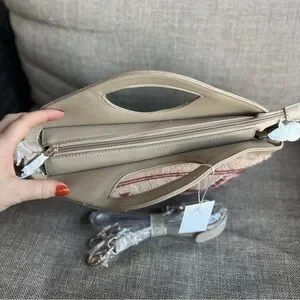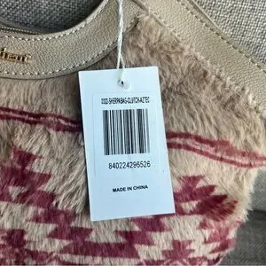 NWT~can be used as a clutch or a purse with strap~13 in. across, without strap 11 in. tall, strap is 24 in. long with 4 adjustable holes~ 2 inside pockets: one of those zips~ the top of the bag also zips~Sherpa front design and leather back