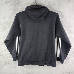 Mens Black Adidas Hoodie Sweatshirt Long Sleeves w/ White Stripes Size XL