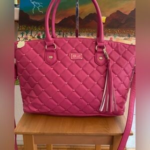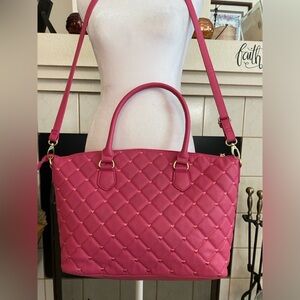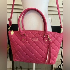 Betsey Johnson, Luv Betsey Quilted Pink Large Tote Bag, Tassel, gold hardware