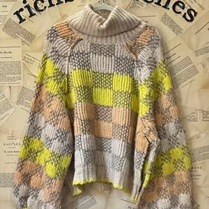 Free People Check Me Out Pullover Sweater Thick Texture Turtleneck Tan Yellow