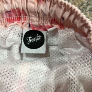 Worn once. Two side pockets. Elastic waist with drawstring. Back Velcro pocket. Fun flamingo pattern.