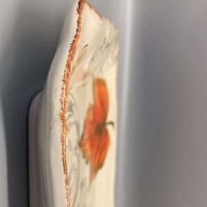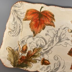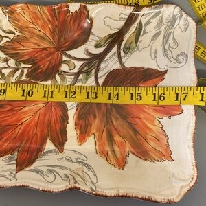 Maxcera long plate for serving enhanced with beautiful pumpkins for decoration.