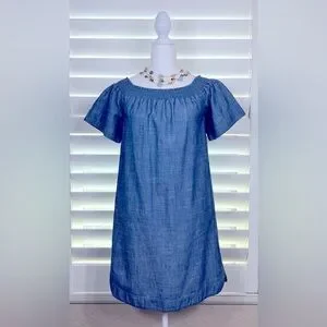 Adorable chambray dress, smocked neckline can be worn off the shoulders. Material feels and looks like linen. In like new condition, worn one time.