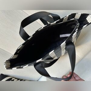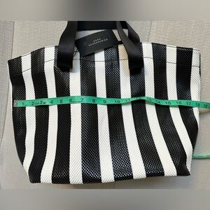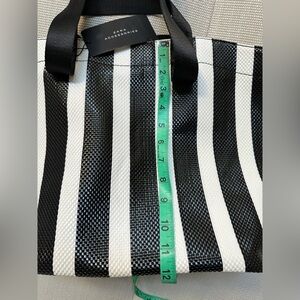 ZARA black & white striped woven tote bag NWT