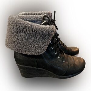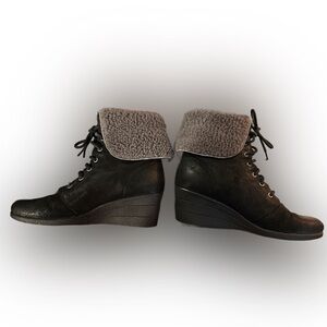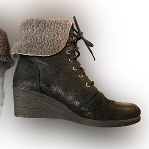 Ugg black wedge lace-up ankle booties. Round toes. Shaft 5.75” Heel 2.5”