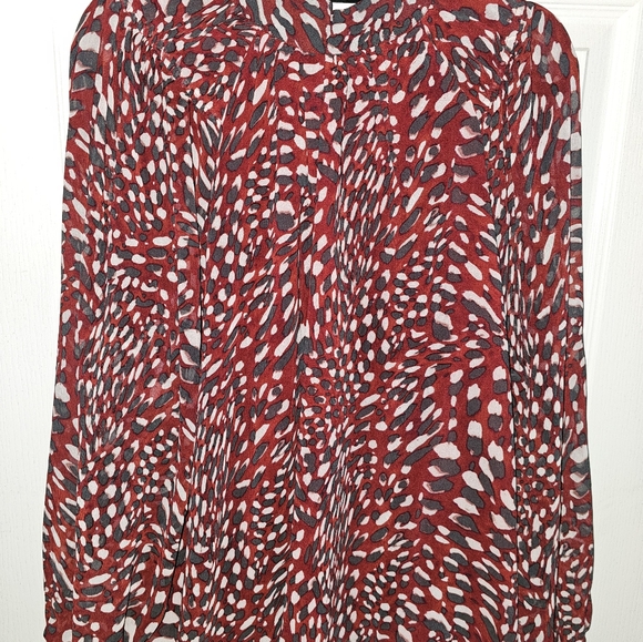 Banana Republic XL Red Leopard Lantern Sleeve Blouse