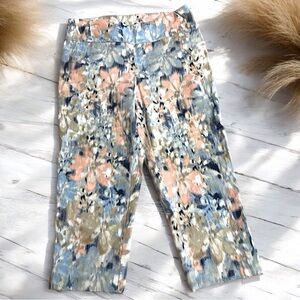 Tummy Control Abstract Floral Print Pull On Cropped Split Hem Pants