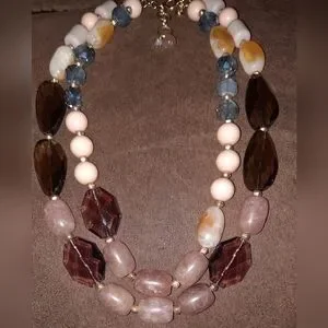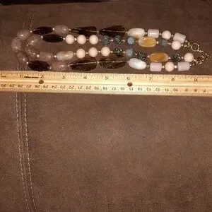 excellent preloved condition gemstone beaded multistrand necklace signed with loft dangle. has extension chain. please use photos for measurements and details and condition other items are display only bundle for savings any questions please ask