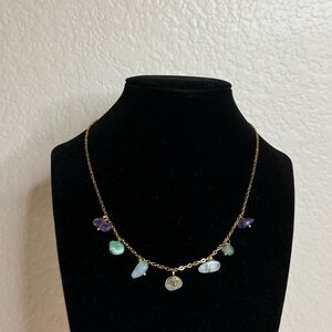 7 mixed stone pendants on 2mm gold stainless steel chain