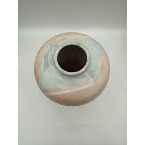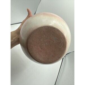 Vintage Bettye Barclay Vase Pot Pottery Large Pink White Blue 8” Handmade Signed