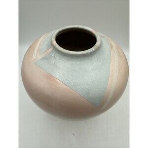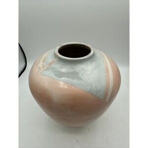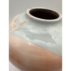 Vintage Bettye Barclay Vase Pottery Large Pink White Blue 8" Tall Handmade. Beautiful vase/pot. Made of clay, sagger-fired porcelain. Some wear--see pictures. The vase is smooth to the touch except for the top--the shapes are a different kind of material, not sure what. The square white reflection on the vase is from the Photo Booth, its not on the item itself. No chips or cracks. No smells inside. Shipped with great care. Thank you for viewing this item and visiting my closet!