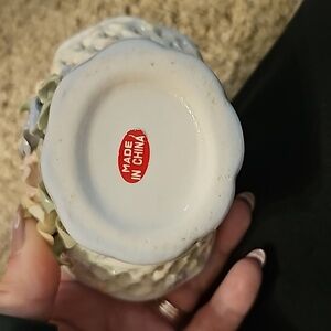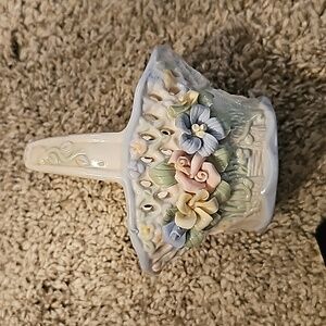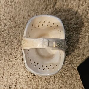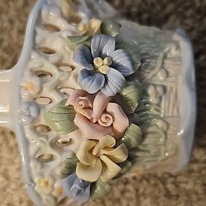 Vintage 1960's Victorian Porcelain Basket, Embossed flowers ceramic basket