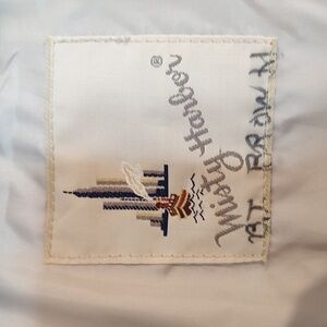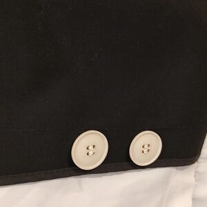 Excellent condition. Vintage Cream & Black Misty Harbor Mid Calf Length Trench Coat sz 14 W/ Belt and Pockets . No hood. Please see pic for materials and further description. Extra buttons.