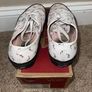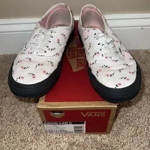 Elevate your sneaker game with these VANS Authentic Lazy Oaf Multi/Black sneakers. With a low top shoe shaft style and standard shoe width, these sneakers are perfect for skateboarding and other athletic activities. The canvas upper material and VANS OG product line ensure durability and quality. Featuring a colorful design with roses and a vintage 80s skating theme, these sneakers are a stylish addition to any wardrobe. They are men's size 6.5 and women's size 8, with a style code of VN0A38EMQ8V and release year of 2018. These VANS Authentic Lazy Oaf Multi/Black sneakers come with the original box and are customized-free.