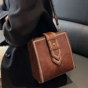 Brown Vegan Leather Western Strap Shoulder Crossbody
