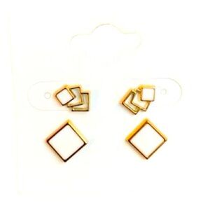 2 Pack Stud Earrings. Acrylic Backing. White & Gold Set. Great for daily wear, gifts, stocking stuffers, etc.