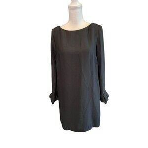 Banana Republic Dress sz 6 Black Long Sleeve Ruffle Classic Career Shift a28