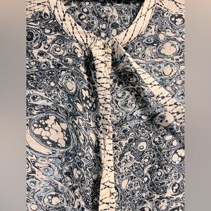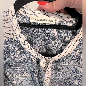VGUC. Ulla Johnson's 'Nara' blouse is printed with a patchwork of mesmerizing marble and shibori motifs inspired by traditional Japanese dyeing techniques. Cut for a slighly loose fit from from breezy cotton-blend voile, it has voluminous sleeves traced with an airy pleated overlay and knotted ties at the neck. Tuck yours into tapered pants. - Tonal-blue and ivory cotton-blend voile - Button fastenings through front - 55% cotton, 45% viscose - Dry clean - Imported