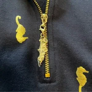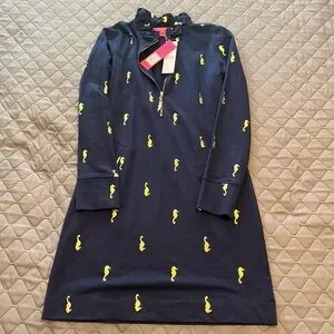 NWT Lilly Pulitzer Skipper UPF 50+ Ruffle Dress, size S. Color is True Navy Seahorse Half Drop. Long sleeved sweatshirt-esque material. Cute Lilly zipper pull. From non-smoking, pet free home. No low ball offers or trades please.