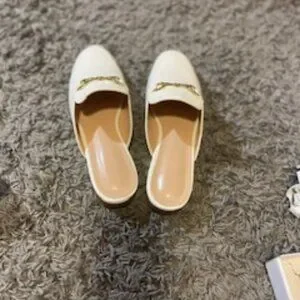Metal Decor Snakeskin Flat Mules, White Elegant Pure Metallic Snake Print Mule Heels