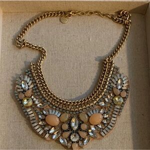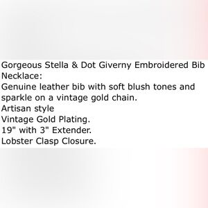 Genuine leather bib with soft blush stones on a vintage gold chain. Don’t have the original box but will package nicely.