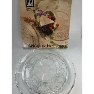 Anchor Hocking Avalon Clear Glass Round 12" Platter Floral Embossed 30903