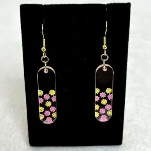 Pink and Yellow Flower Engraved Acrylic Dangle Earrings