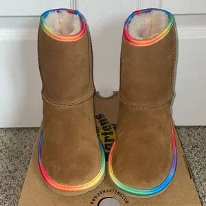 🆕 UGG 🌈 Classic Short II Chestnut Rainbow Shearling Lined Boots Size 1