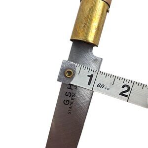Introducing the Hocho Sashimi Knife from Japan, a vintage and rare piece that will surely impress any kitchen enthusiast. This knife features a straight blade edge made of stainless steel, perfect for slicing through meat, vegetables, and fruit with ease. The handle is made of wood and brass, providing a comfortable grip and adding a touch of elegance to the knife.
