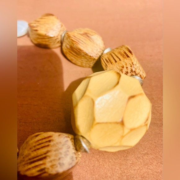 Peyote Bird Wood and White Agate bead necklace. NWT. New With Tags. Contemporary Mixed media wood like resin beads and smooth white agate beads with silver spacers. Marked 925 on clasp for sterling silver. Note: This is more of a costume jewelry piece. I do not believe this is real wood or genuine agate. I do not have a gem tester to test. Approximate dimensions: 17 inches in length total.