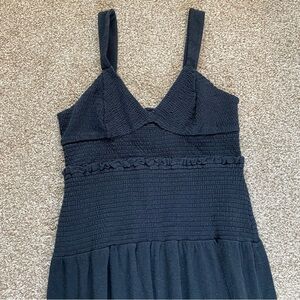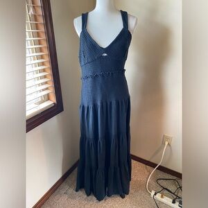 Anthropologie Ruched Tiered Maxi Dress, XL, Black Smocked, Stretchy, Cottagecore