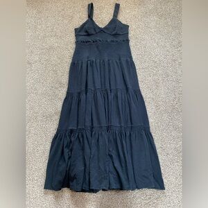 Excellent condition Anthropologie black ruched tiered maxi dress. Has a fair amount of stretch to it. Works for a variety of styles - Cottagecore, Witchy, Prairie, Goth, Casual - very versatile.
