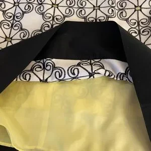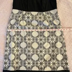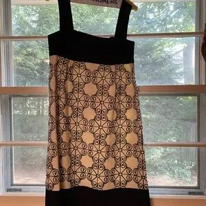 Fabulous cocktail/sundress! Beautifully lined with contrasting yellow lining. Back zipper. Perfect condition, no flaws. Runs small, more like a six or four instead of the 8 on the label. Very comfortable for hot weather. Please see measurements in photos. Dry clean.