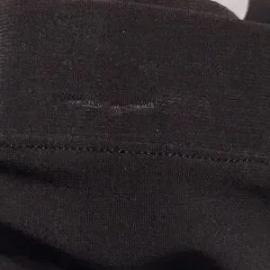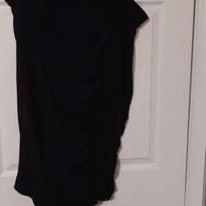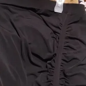 black skirt 96% polyester 4%spandex. ruched on left side 26/28. has hanger marks