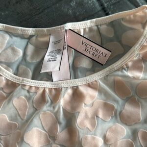 Sheer long sleeve body suit with velvety petal design and snap button closure.