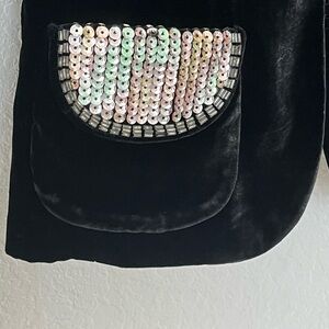 Velvet Woman’s Blazer with a beaded and sequined neck collar and front pockets. As you move they give off an iridescence shine!✨