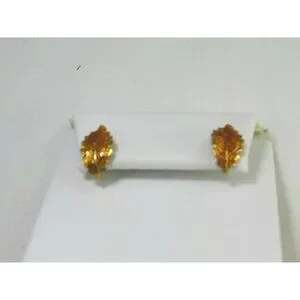 Vintage Art Co Rust Leaf Enamel Pierced Earrings Goldtone Gold Tone 51611