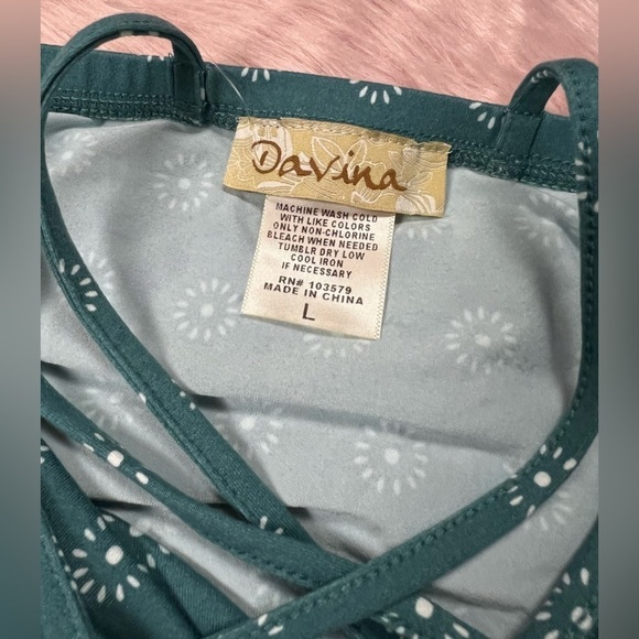 Teal Green Knit Jumpsuit w/Strappy Back Sz L By Davina NWOT