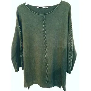 Soft Surroundings Green Knit Sweater Long Sleeve Textured Design Comfortable M