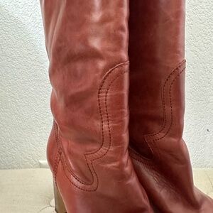 In great condition, Zara leather Western vibe boots. Thick heel, very comfy. Size 39 (8 -9)