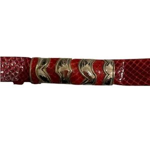 Excellent used condition (EUC), authentic β $495 JUDITH LIEBER for SAKS FIFTH AVENUE red snakeskin belt with gold hardware.